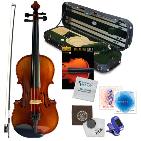 Accessories: Comes set up with Helicore strings. Includes tuner, Hal Leonard Fiddle Method Book 1, extra strings, and polishing cloth.