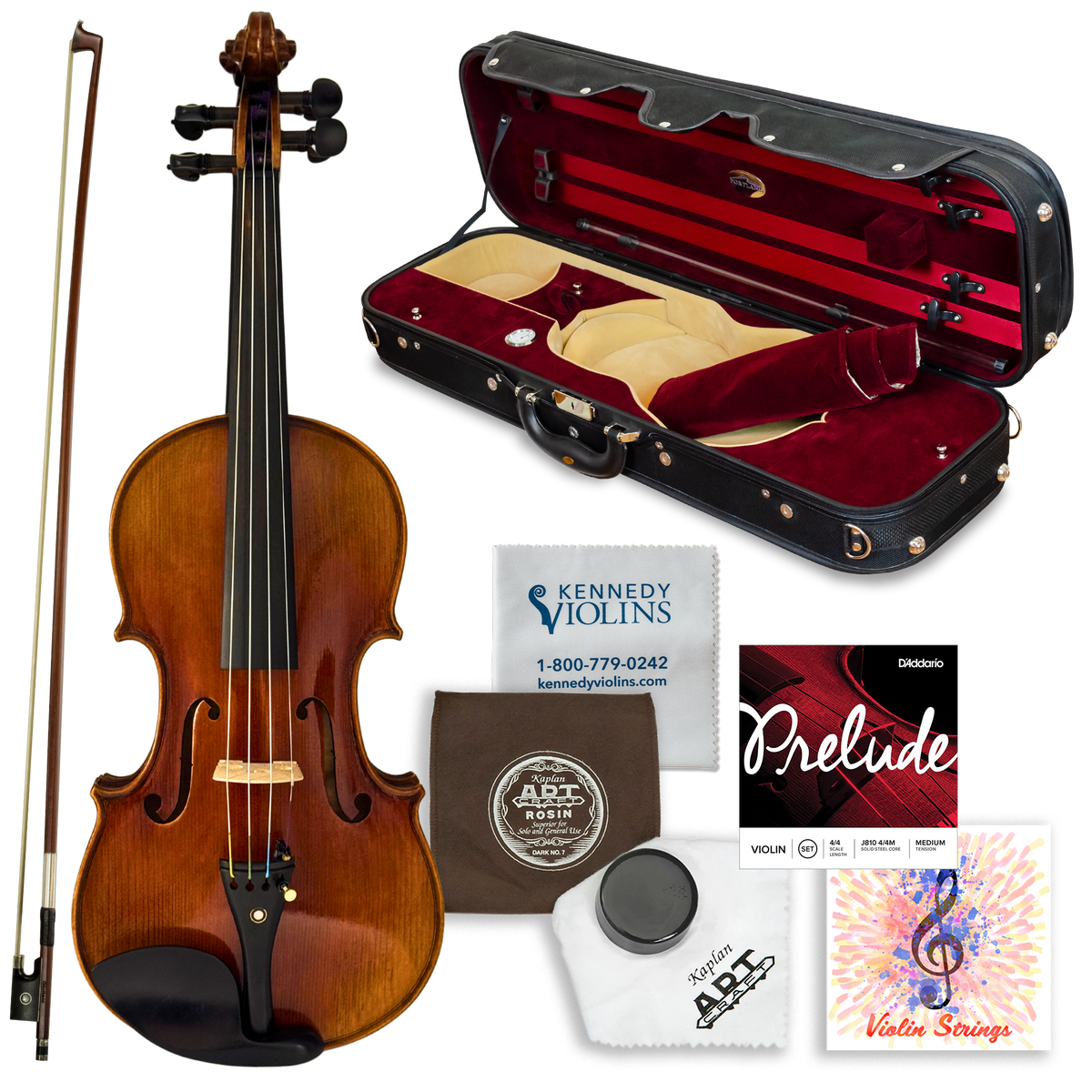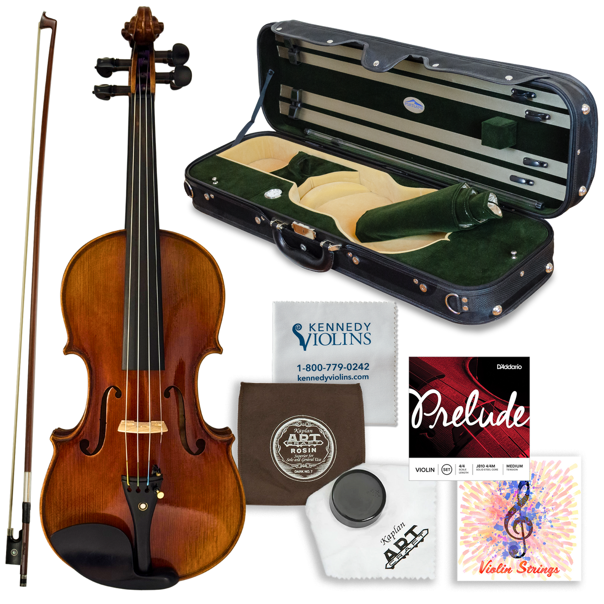- Installing strings and tuning the violin (violin may need to be re-tuned after shipment)