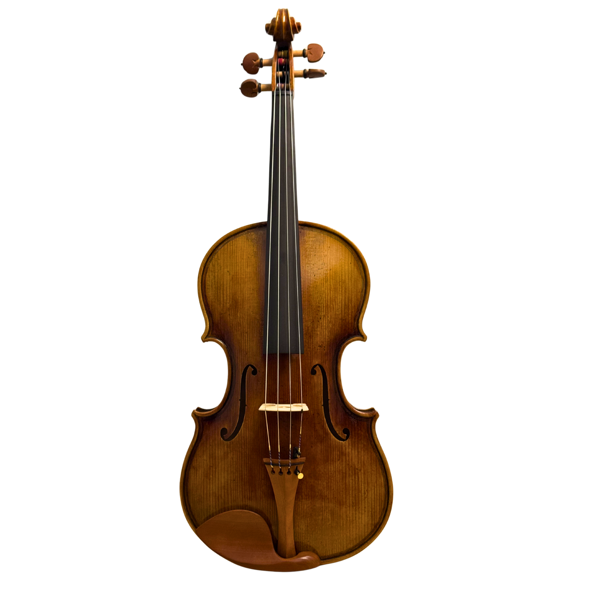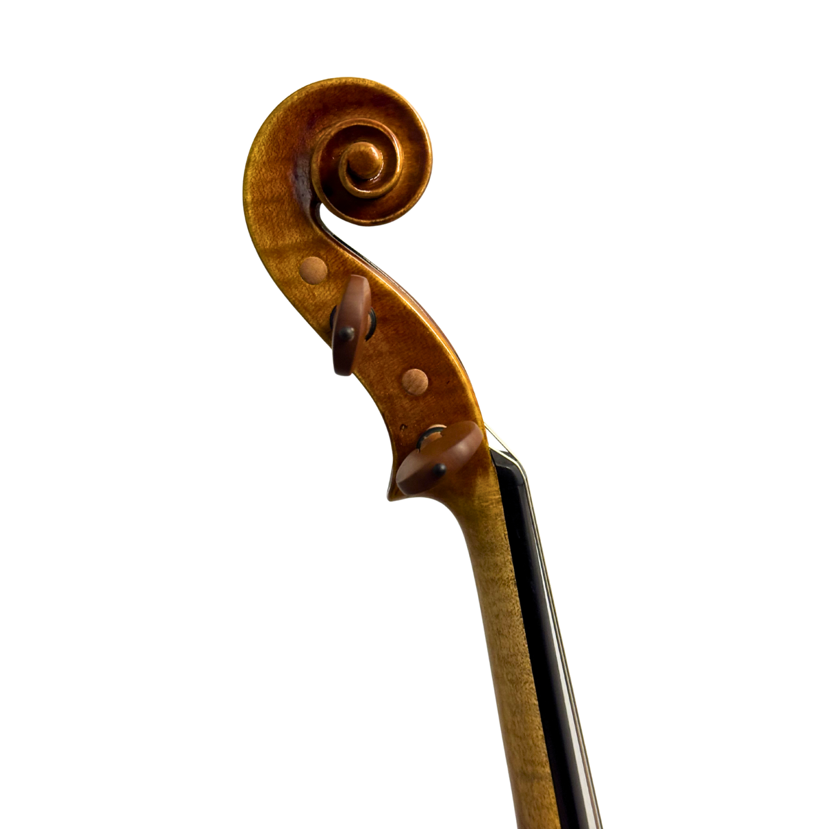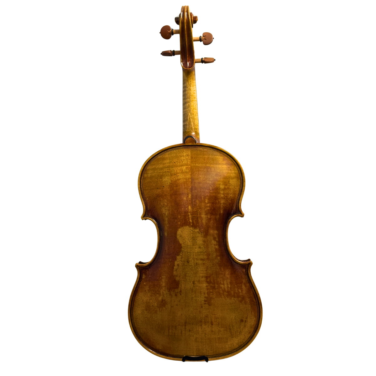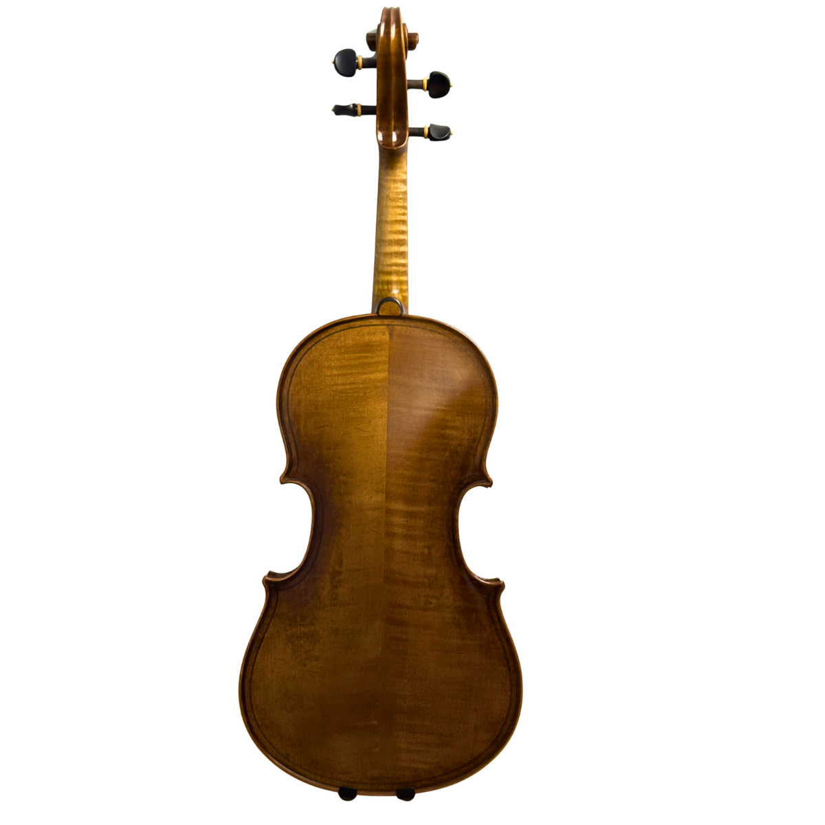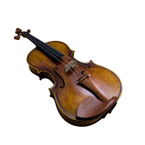 Built with traditional Brescian arching, this viola produces a full, robust voice with excellent projection and a strong core tone. The design encourages a broad resonance across all registers, while still maintaining clarity and articulation. The double purfling adds a striking historical detail, complemented by a beautifully antiqued brown varnish that gives the instrument a seasoned, old-world aesthetic.